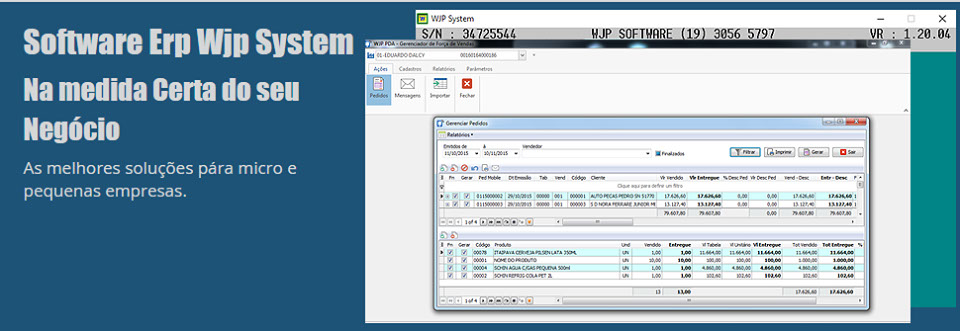 O Wjp system possui módulos para controle Financeiro,Contas a Pagar e Contas a Receber. Controle de Estoque, Fiscal, entre outros